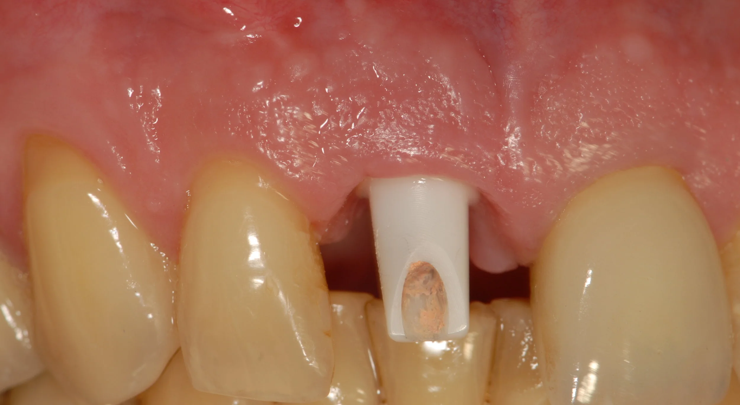After the implant has bonded to the jawbone, the second phase begins. The surgeon will uncover the implants and attach a small healing collar. Dr. Progebin can then start the prosthetic process.
